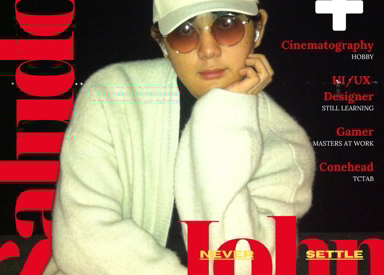 A graphic design edit featuring myself as a magazine cover model, exploring layout, typography, and visual composition.